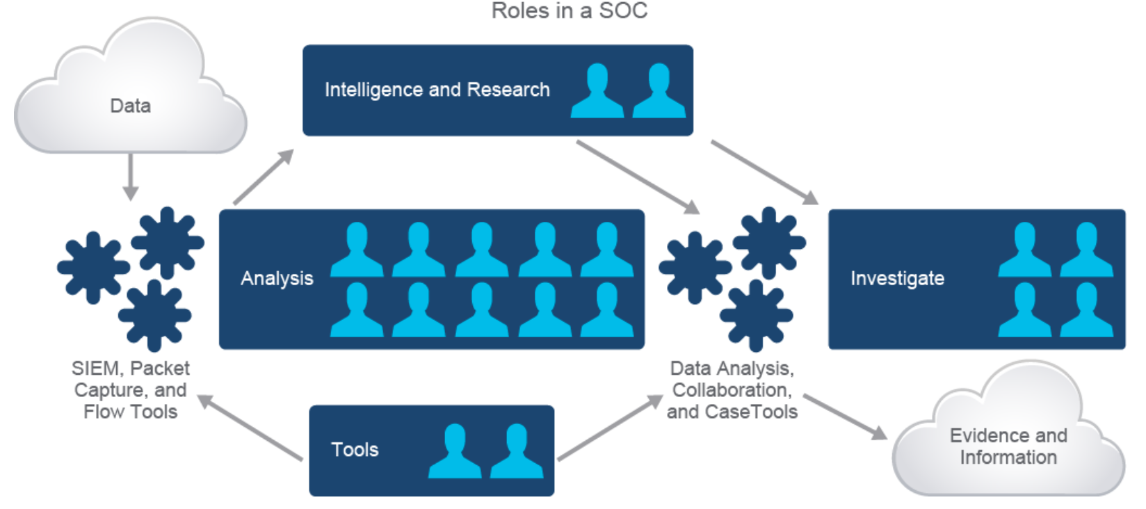 - This SOC job role diagram is not specific because research has indicated that organizations vary widely on the job roles and responsibilities within a SOC.